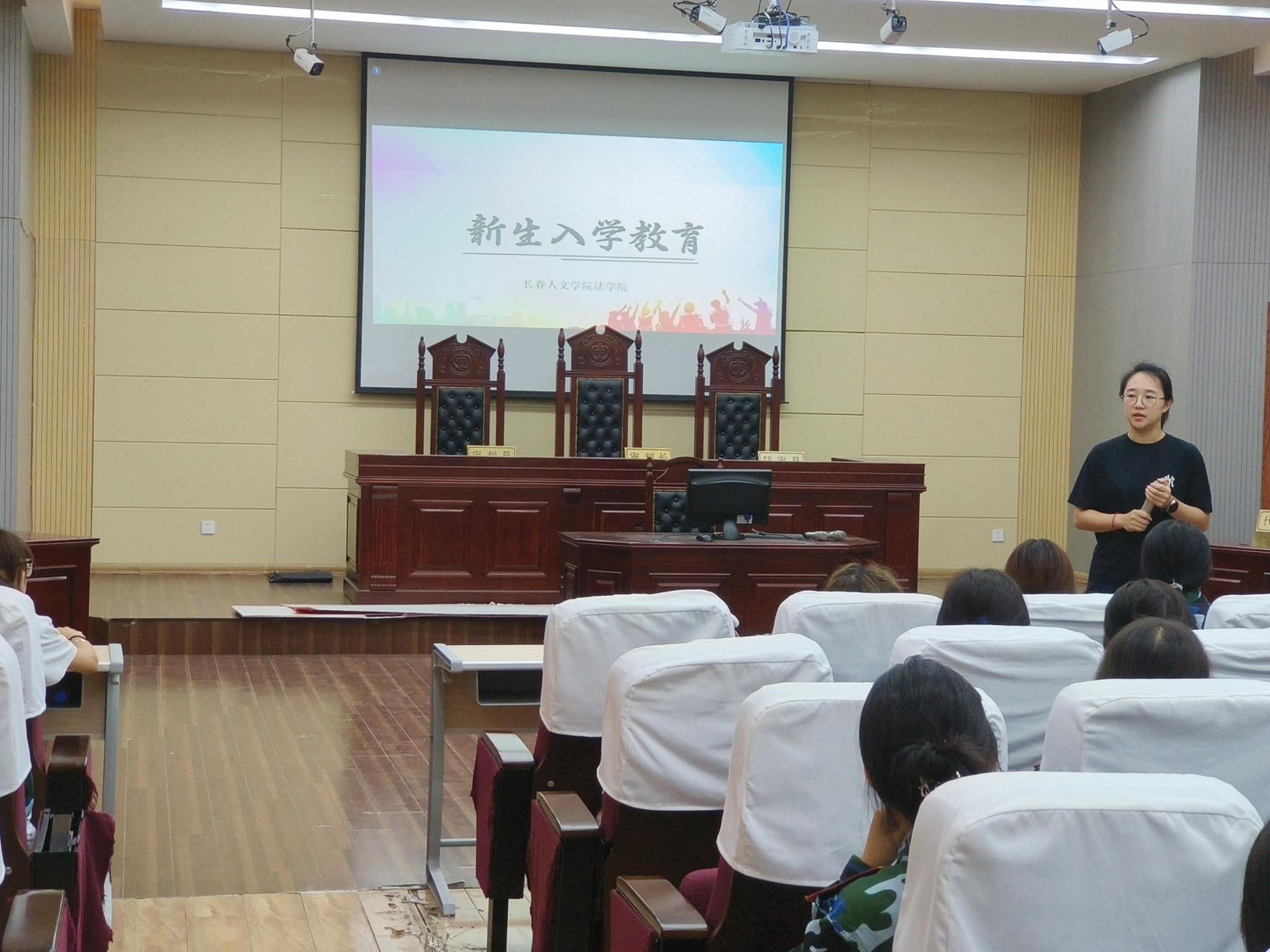 为帮助2023级新生更好地适应大学生活,了解本学院的人才培养体系和培养方式,明确学习目标和专业方向。betvlctor网页版登录于2023年8月28日在西区四号教学楼模拟法庭举行了“2023级新生入学教育活动。”活动由法学院分团委书记、2023级辅导员周玥老师主讲,法学院2023级全体新生参与此次活动。