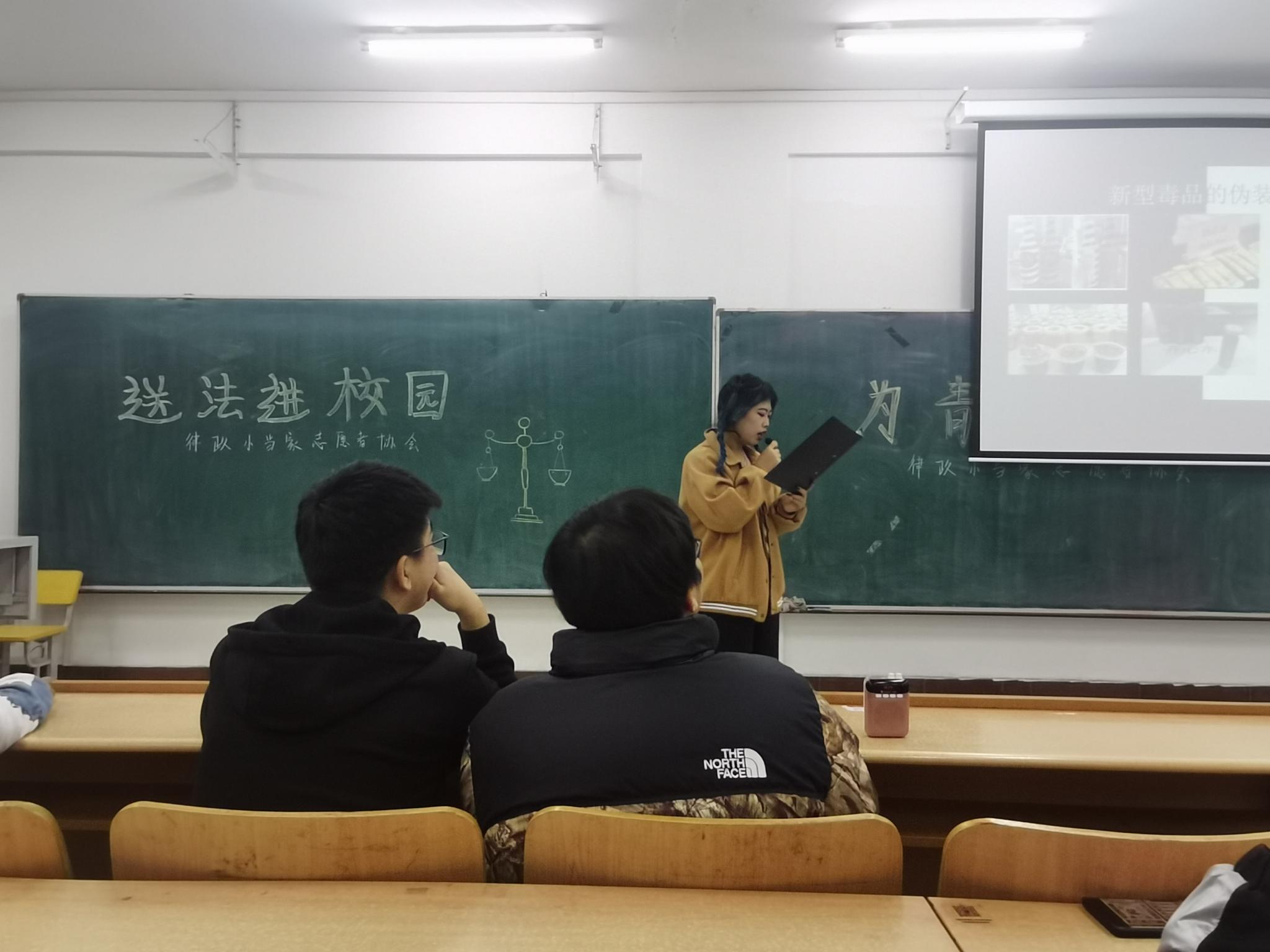 之后,由宣讲人李静怡介绍相关毒品方面的问题。首先,她进行了一个小提问——毒品在法律上的定义是什么?毒品都有哪些种类?都包含什么?这个问题让台下的同学们积极地发言,再次“点燃”了会场的氛围!