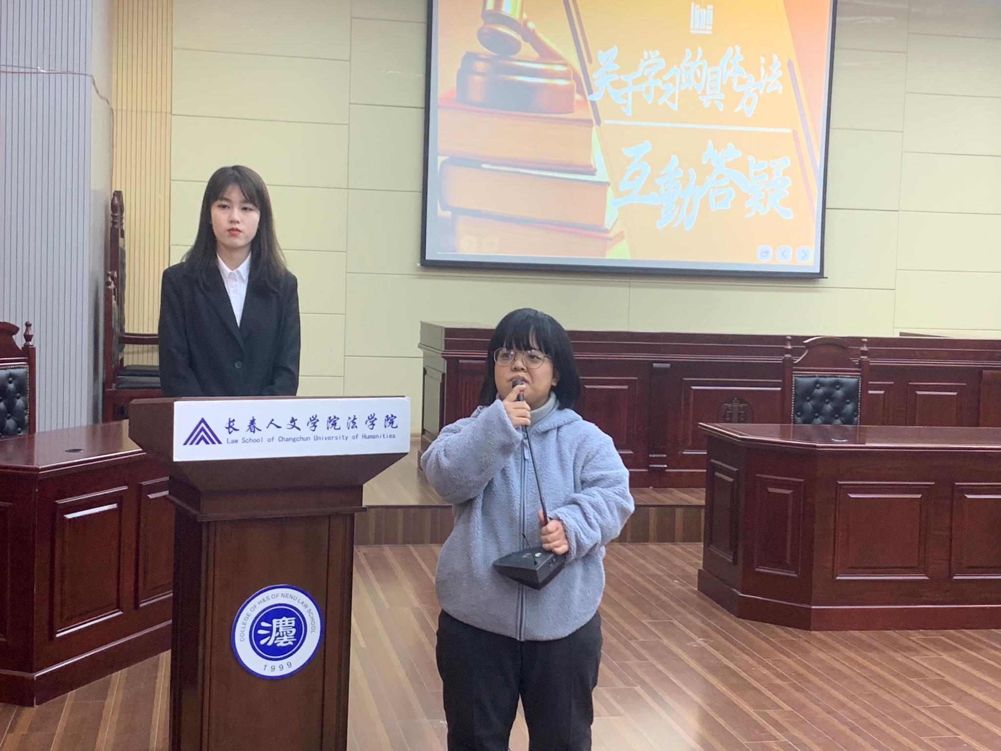 活动开始,王俪然同学就如何迅速进入学习状态、提高学习效率、融入法学院这个大集体进行了宣讲。在宣讲中,王俪然同学从如何培养法学学习兴趣、怎样坚持学习的决心、怎样利用假期时间体验实习、如何提前进行职业生涯规划四个方面进行了详细解读。同学们从宣讲中了解到:法学专业的学习是一个漫长而艰难的过程,主动安排学习计划、确立学习目标、提早学习、快速行动、改善学习方法、提高学习效率、坚持终身学习,才能在法学学习的道路上更进步。王俪然同学也为大家介绍了法学院合作的大量实习合作基地,让他们了解到可以利用寒暑假时间体验司法实践过程,感受理论学习与实务应用之间的差距,让理论和实践相结合。在宣讲中,王俪然同学还强调了提早进行职业规划的重要性,所以现在开始要脚踏实地学好法学知识,未来以更充分的准备去面对法律职业资格考试和考研,提高自己的能力,拓展自己的就业选择,才能应对社会发展的需要。最后进行了问答环节,王俪然同学与毕瀚文同学耐心地对同学们提出的问题一一进行了详细的解答。