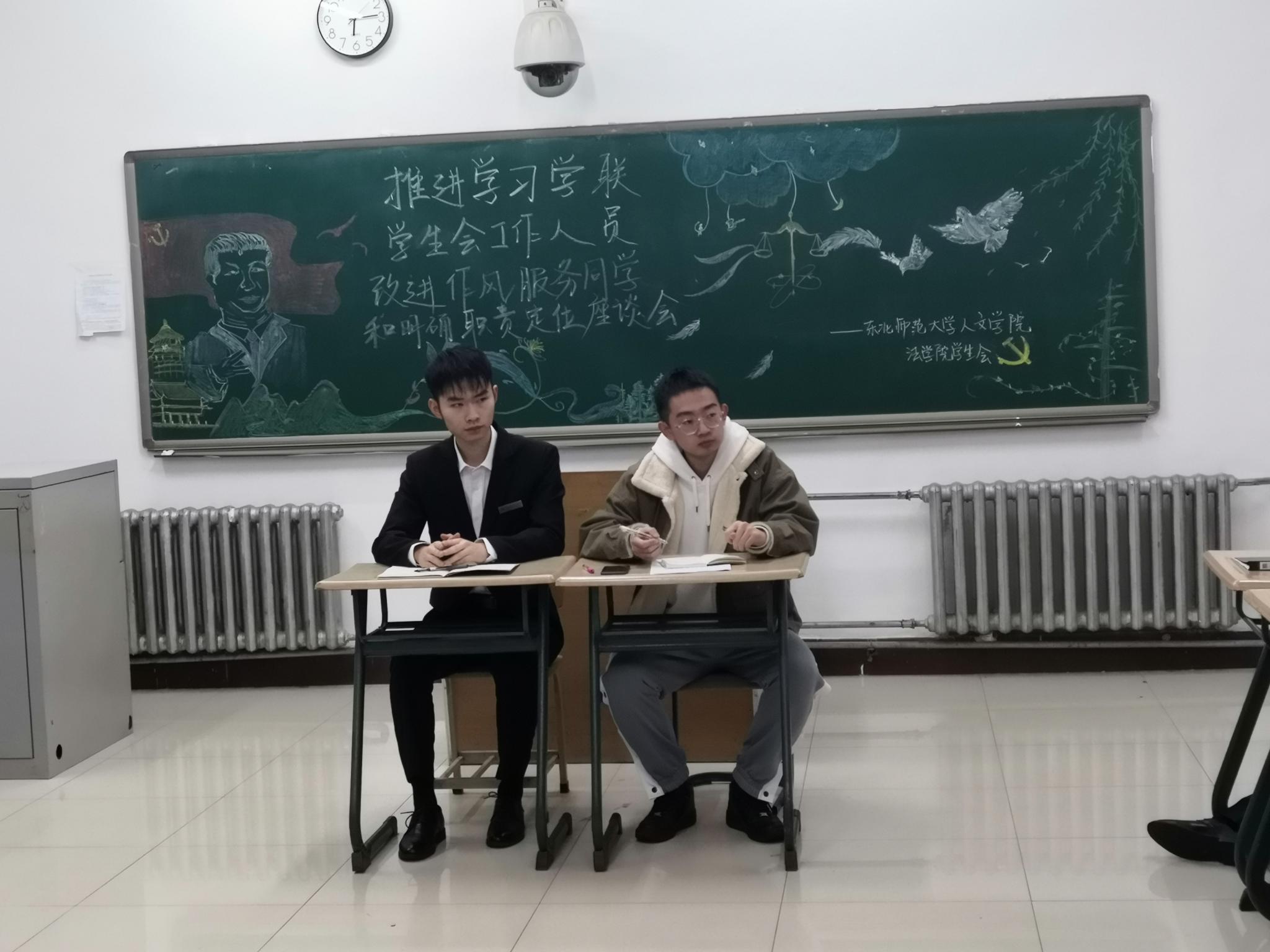 为深入推进学联学生会组织改革,全面加强对学联学生会工作人员的管理,2020年11月22日18时,东北师范大学人文学院betvlctor网页版登录学生会于我校西区四号教学楼202教室组织展开专题座谈会,传达学习《关于学联学生会工作人员改进作风服务同学的若干规定》文件精神,学生会部分成员参加此次会议。