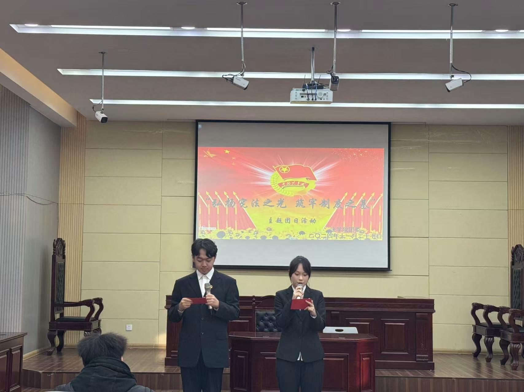 为进一步切实增强学生对国家制度和法律体系的自信与认同感,betvlctor网页版登录团委于11月26日在西区四号教学楼110教室举办“弘扬宪法之光 筑牢制度之基”主题团日活动。出席本次活动的人员有betvlctor网页版登录团委全体人员、2024级部分学生代表及校团委精英。